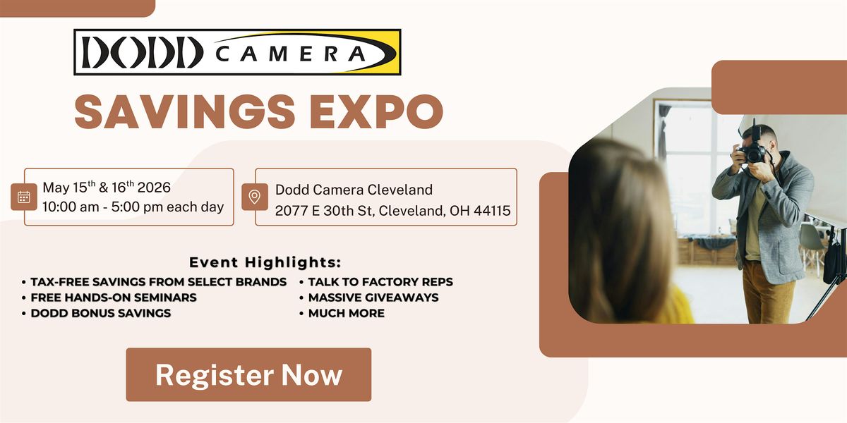 Level up your creative game at the 2026 Dodd Camera Savings Expo! This is Cleveland’s premier event for photographers and filmmakers to score massive deals on the industry's biggest brands, including Sony, Canon, Fujifilm, Nikon, Sigma, & Tamron.
