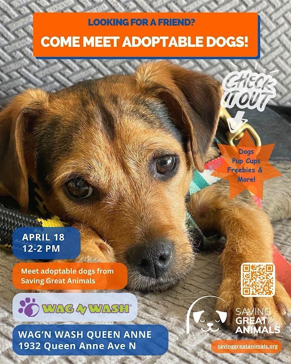 Join us in person for an awesome day at the Dog Adoption Event! We're all about Saving Great Animals and spreading joy with Wag 'N Wash. Meet adorable pups looking for their forever homes and enjoy some tail-wagging fun. Whether you're ready to adopt or just want to hang out with furry friends, this event is for you! Don't miss out on a day full of love, wagging tails, and new friendships. 12-2
