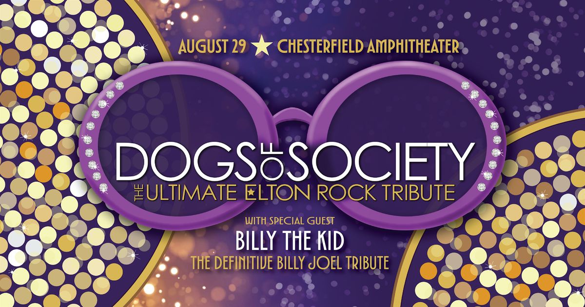 The Chesterfield Amphitheater presents Dogs of Society—Ultimate Elton Rock Tribute on Saturday, August 29, 2026! Doors open at 6:00 PM. Show starts at 7:00 PM.