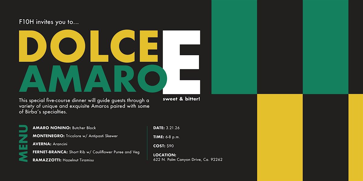 Dolce e Amaro translates to Sweet and Bitter. Amaro is an Italian aromatic bitters infused with various herbs, roots and citrus peels. The bitter and herbal complexity of amaro greatly enhances rich, savory flavors, but it also smooths the spicier and more acidic dishes through sweetness.