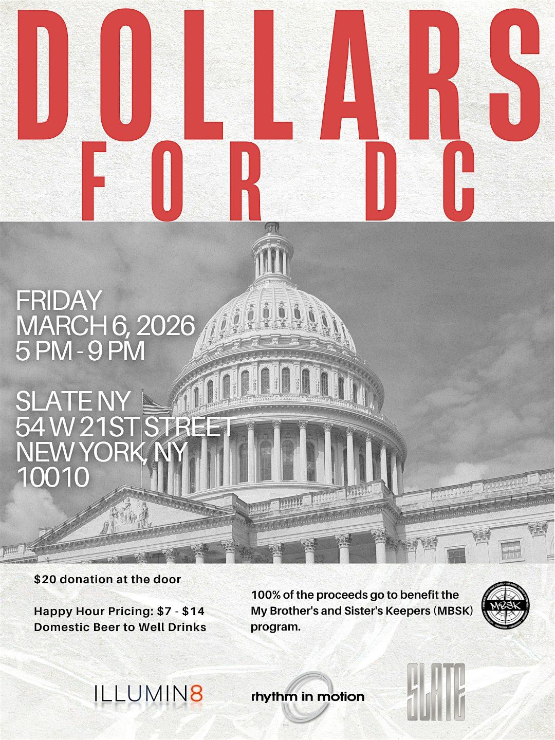 Join us for an after-work happy hour supporting My Brother’s and Sister’s Keepers (MBSK).