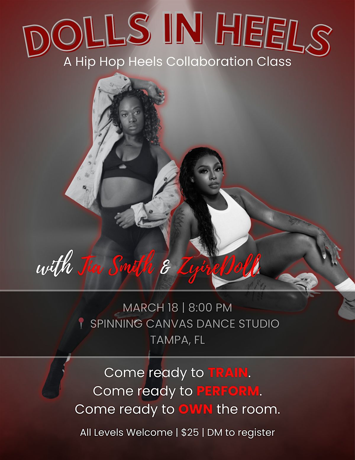 DOLLS IN HEELS is a high-energy Hip Hop Heels collaboration class led by Tia Smith and ZyireDoll.