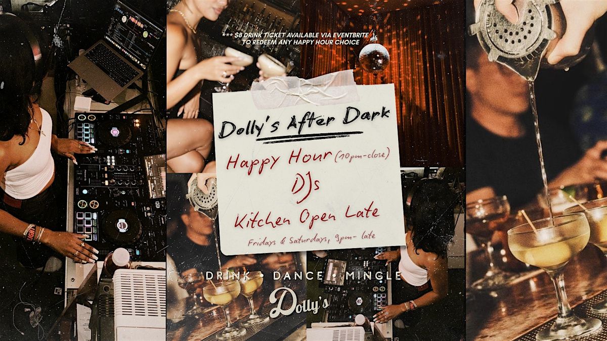Late-night happy hour, DJs, dancing, and the kitchen open late. Drink, dance, mingle at Dolly’s After Dark.About this Event