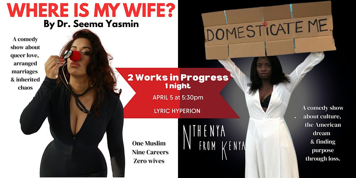 In Where Is My Wife? Dr. Seema Yasmin's one woman show, she mines the chaos of ambition, immigration, and the ghosts of ancestors—generations of repressed women—whose unfinished dreams she’s trying to complete before lunch; all while searching for her ideal match: a Malibu Power Lesbian.