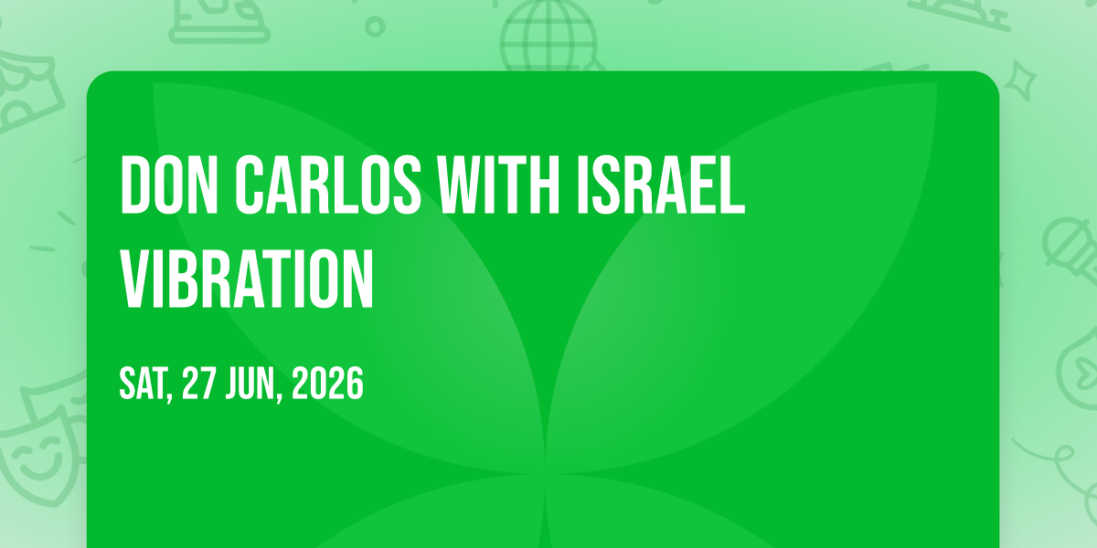 📍 Location: 32.9758, -117.258✨ Enter a world of endless possibilities at Don Carlos with Israel Vibration, where every moment tells a story! 🏛️ The stunning The Sound - Del Mar in vibrant Del Mar, CA transforms into a realm of wonder on June 27th, 2026 at 01:00 AM. 🌟 They have crafted an experience that goes beyond the ordinary, combining elements of surprise, delight, and pure entertainment. Every detail has been thoughtfully considered to ensure your journey with us is nothing short of extraordinary. 🎯 Join fellow adventure seekers and memory makers in this celebration of imagination and innovation. 🎊 Reserve your spot today and be part of something truly special!