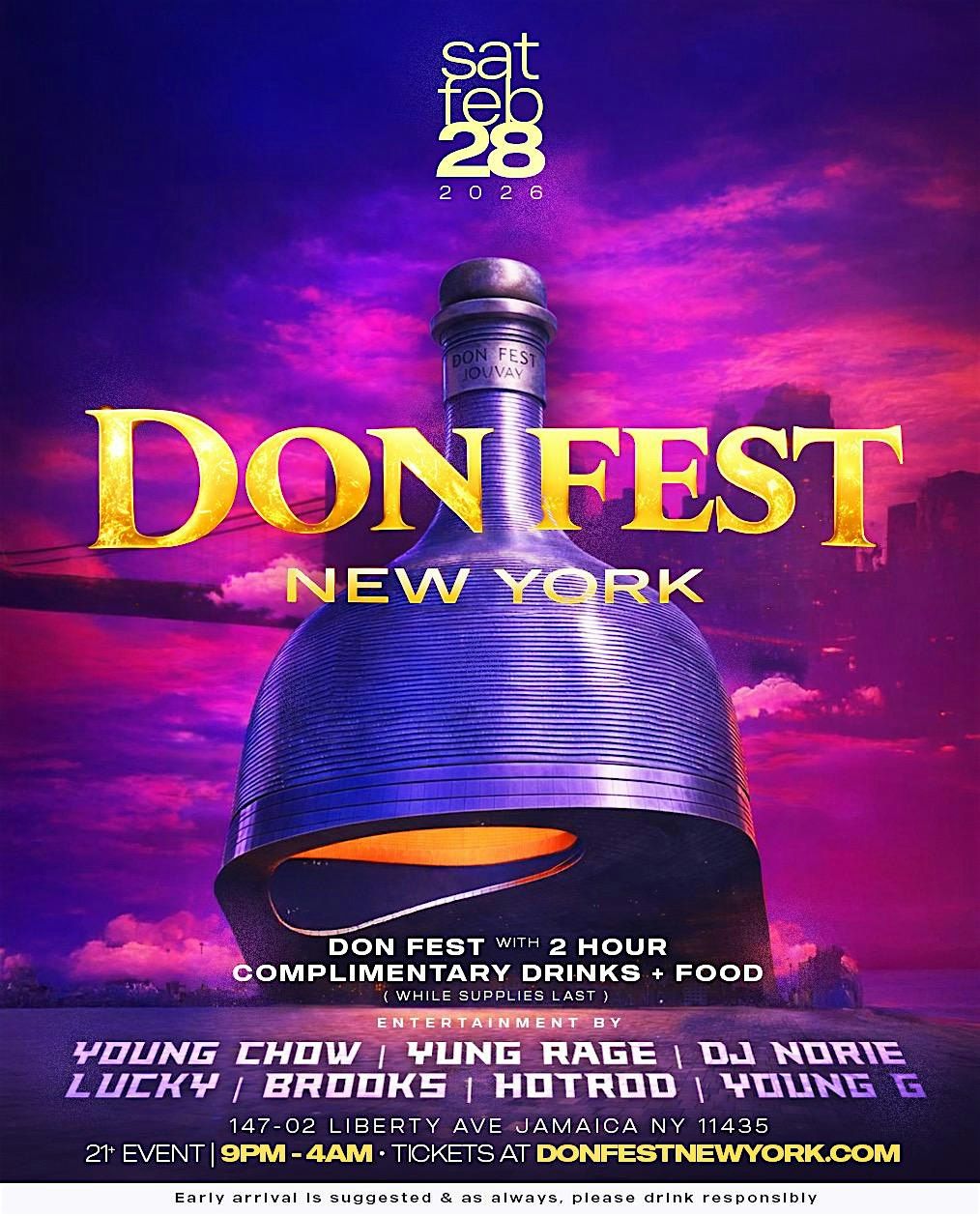 BOTTLE RESERVATIONS TEXT THE WORD #DONFEST 718-864-0336