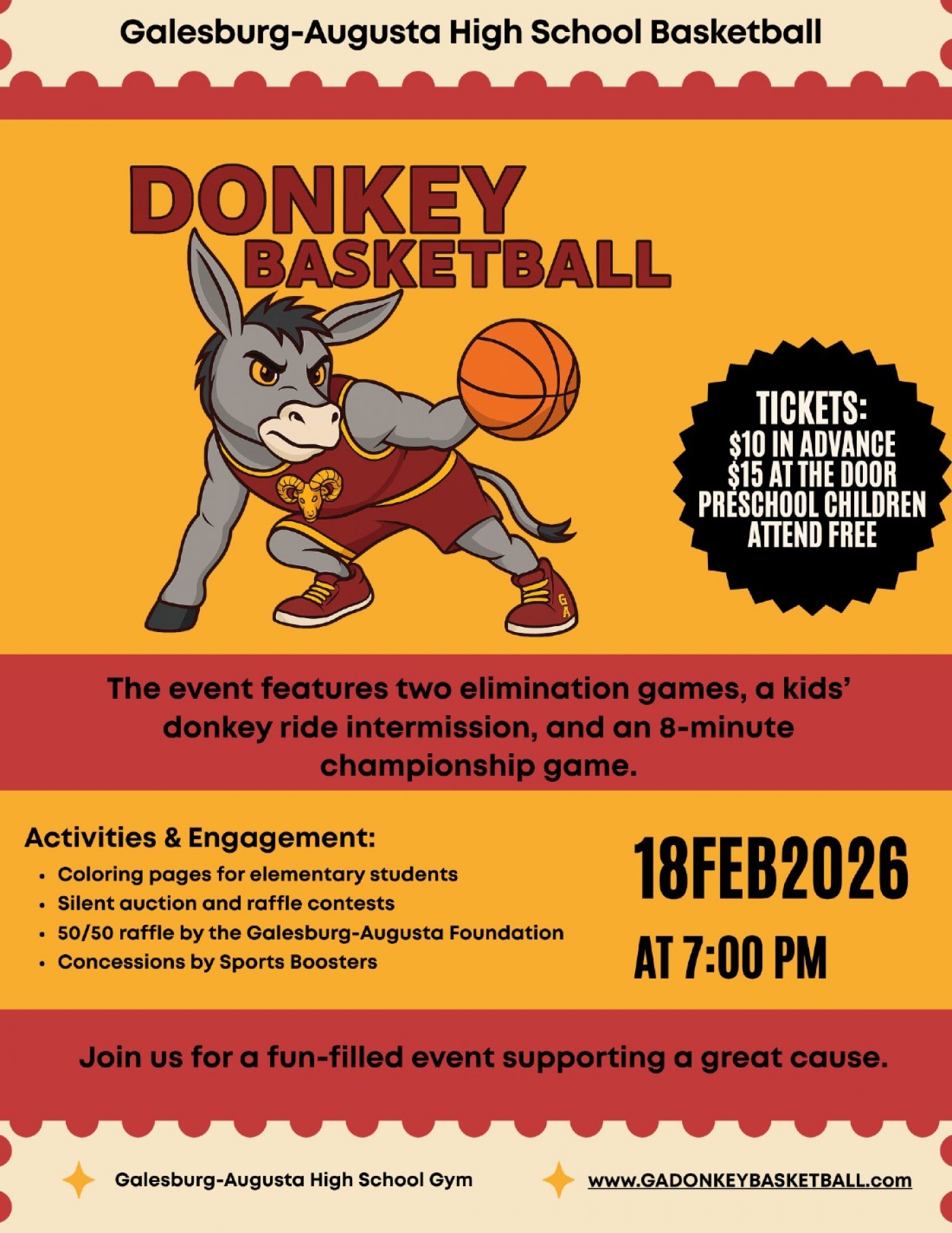 2026 Galesburg-Augusta Schools' Dairyland Donkey Basketball Advance Ticket E-Sale