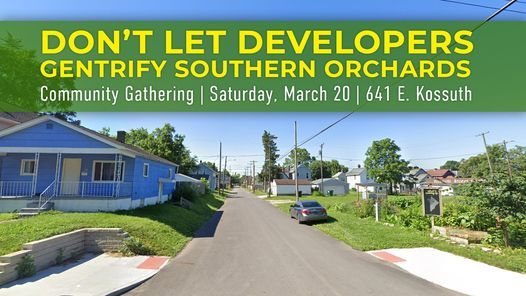 Join us for a community gathering and open air discussion on how we can stop the developer from gentrifying Southern Orchards
