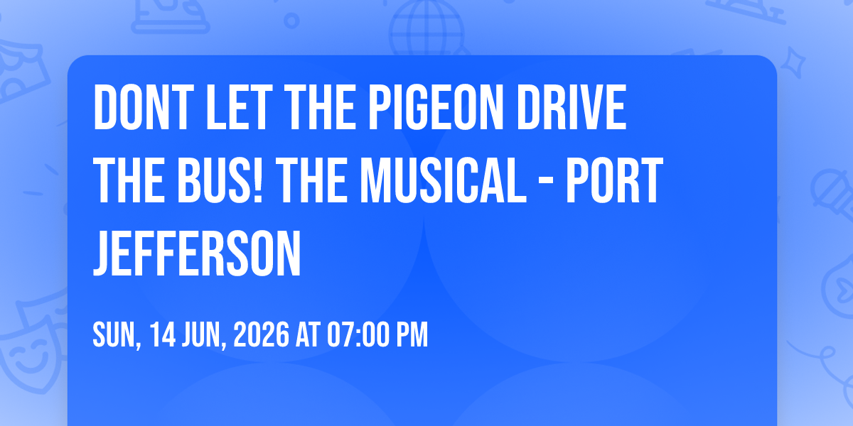 📍 Location: 40.9438, -73.0674✨ Experience the magic of Dont Let The Pigeon Drive The Bus! The Musical - Port Jefferson, where moments become memories that last a lifetime! 🏛️ The iconic Theatre Three in Port Jefferson, NY sets the perfect stage for an unforgettable celebration on June 14th, 2026 at 07:00 PM. 🌟 It's been a curated experience that brings together the best of entertainment and innovation, creating an atmosphere of wonder and excitement. From the moment you arrive, you'll be immersed in a world where the ordinary transforms into the extraordinary. 🎊 Book early to secure your place in what promises to be an event that will be talked about for years to come!