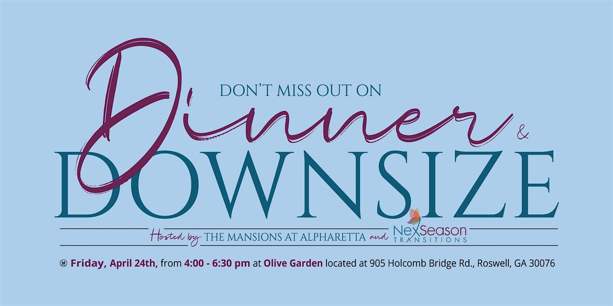 Thinking about downsizing but not sure how to begin? Come enjoy dinner on us at Olive Garden, 905 Holcomb Bridge Rd, Roswell, GA 30076, on Friday, April 24th from 4:00 pm to 6:30 pm.