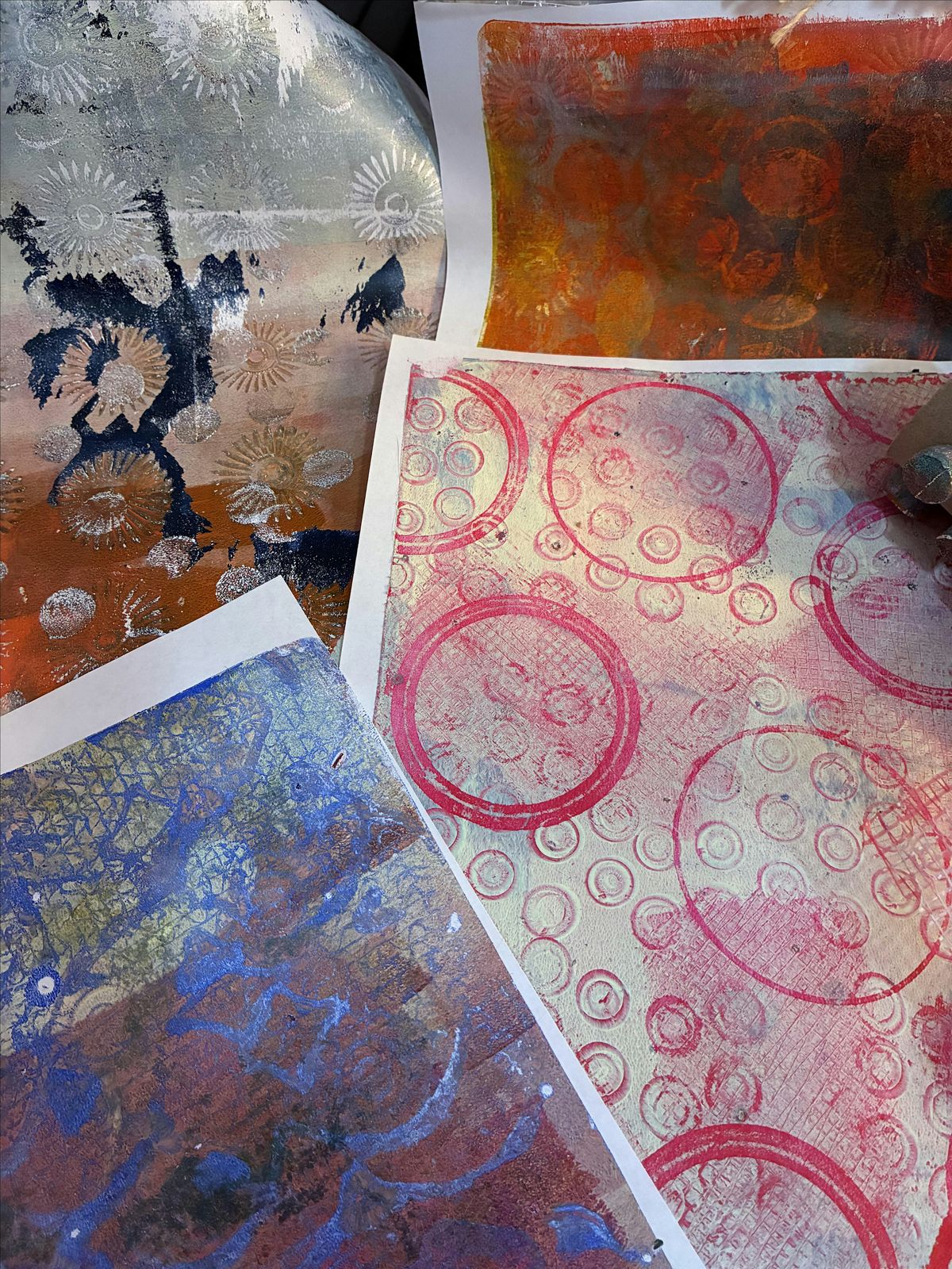 This Earth Day let's re-use our packing, recyclables, and stuff we ususally throw away to make beautiful gel printed papers! Use your papers for Junk Journals, Cards, Collage & More! Back by popular demand, this Gel Print Workshop is super fun and doesn't require any painting skills! And we're giving back!