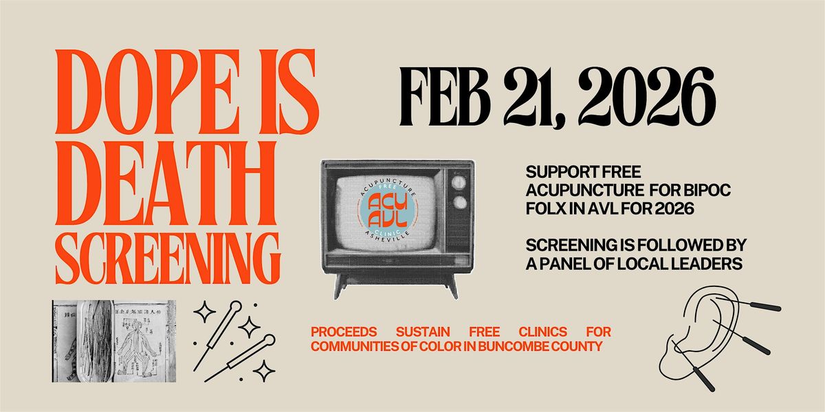 A fundraiser documentary screening of Dope Is Death supporting the Free Acupuncture Clinic of Asheville (FACA).