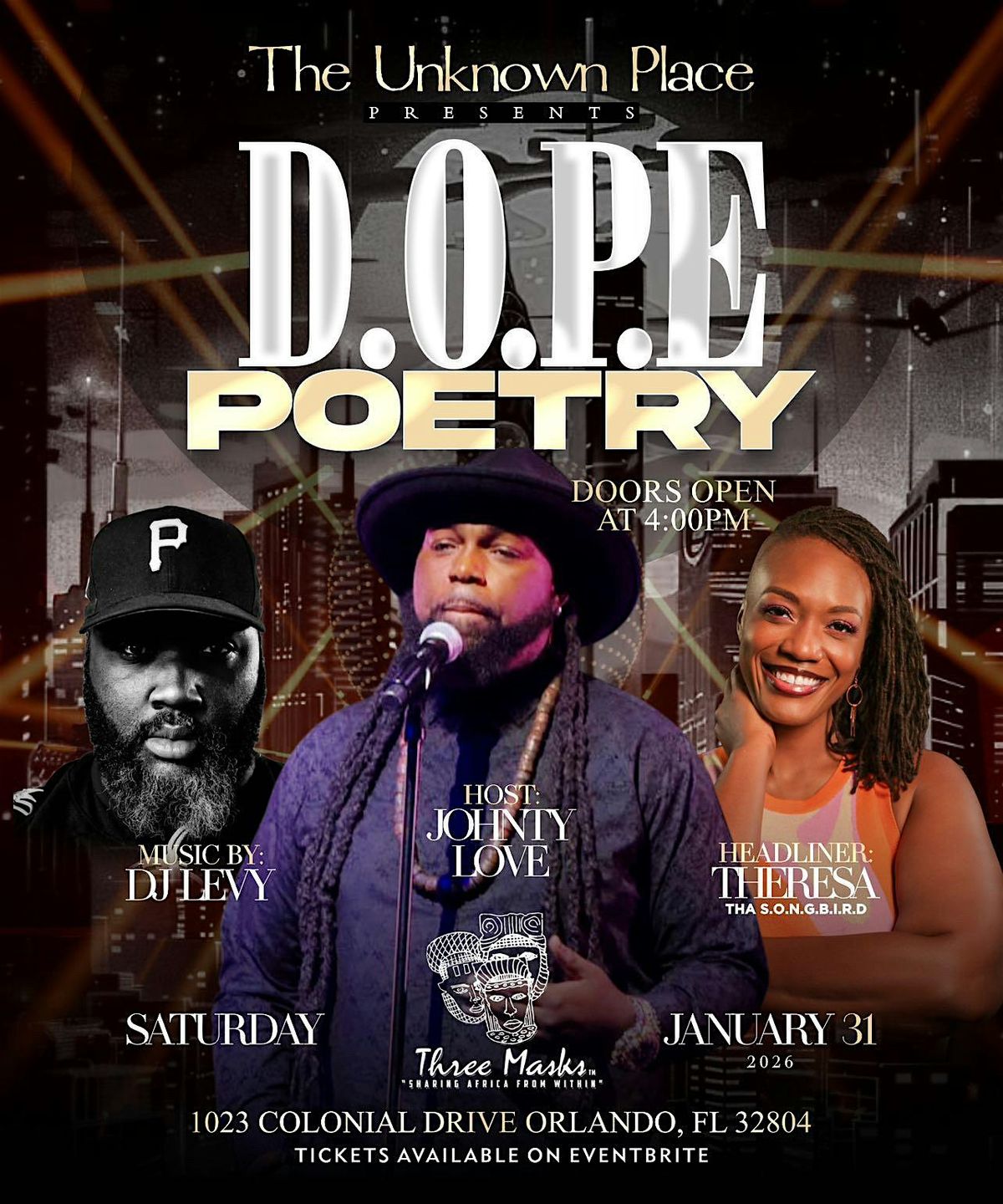 Get ready for an evening surrounded by culture, creativity, & amazingly dope energy. The D.O.P.E. Poetry online platform is coming to Orlando with a live showcase, & bringing that irreplicable Tampa vibe that you do NOT want to miss! This isn't just a showcase; it's an experience!
