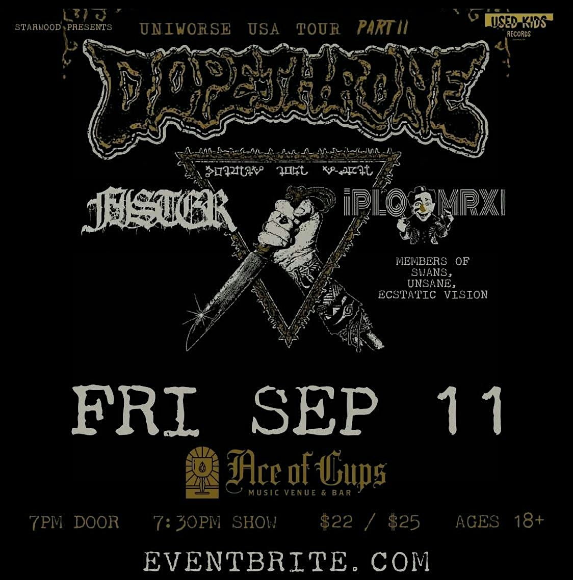 Get tickets now for Dopethrone with Fister and PLQ MRX at Ace of Cups on Friday, September 11thAbout this Event