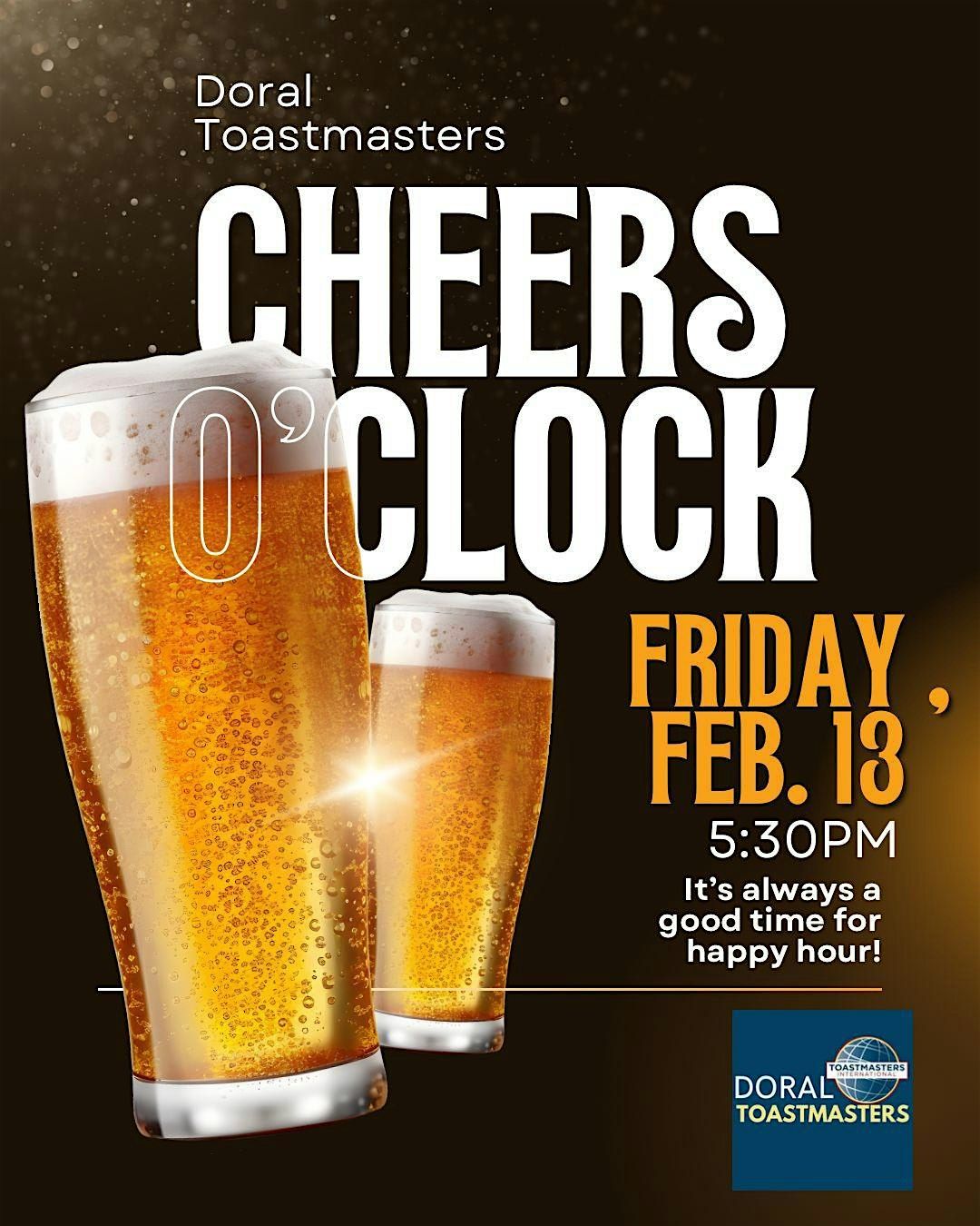 Join us at The Tank on Friday, February 13th at 5:30 PM as Doral Toastmasters hosts a Happy Hour Social! 🍹