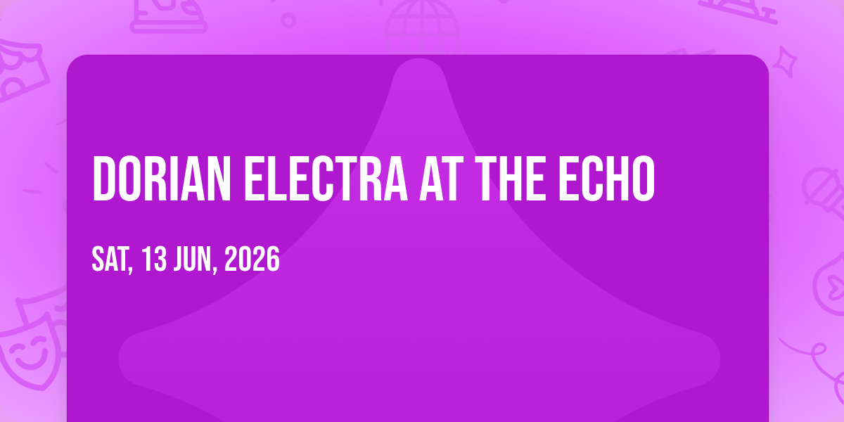 🎉 Welcome to Dorian Electra at The Echo, where the impossible becomes possible and dreams take flight! 🏛️ Join us at The Echo in the heart of Los Angeles, CA for an event that will redefine your expectations. 📅 On June 13th, 2026 at 09:00 PM, witness the transformation of space and time into something truly magical. ✨ It's a curated experience combining the best of innovation, entertainment, and community spirit, creating moments that will be remembered for years to come. Whether you're a first-time visitor or a seasoned enthusiast, prepare to be amazed. 🎊 Book now to ensure your place in this unforgettable experience!