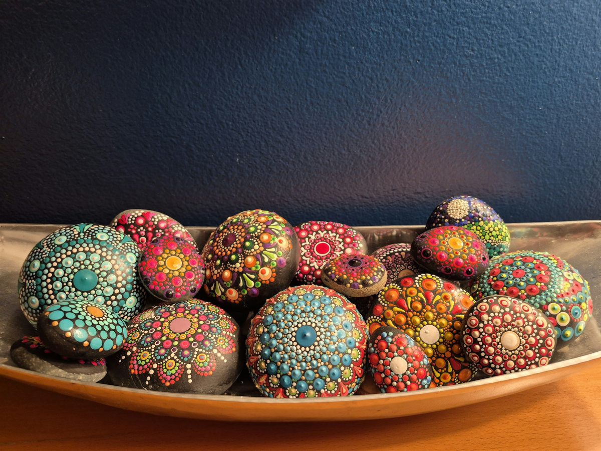 Join me and my favorite band of yahoos making magic mandalas. We'll paint our faces off on rocks, canvas, or whatever else we like.