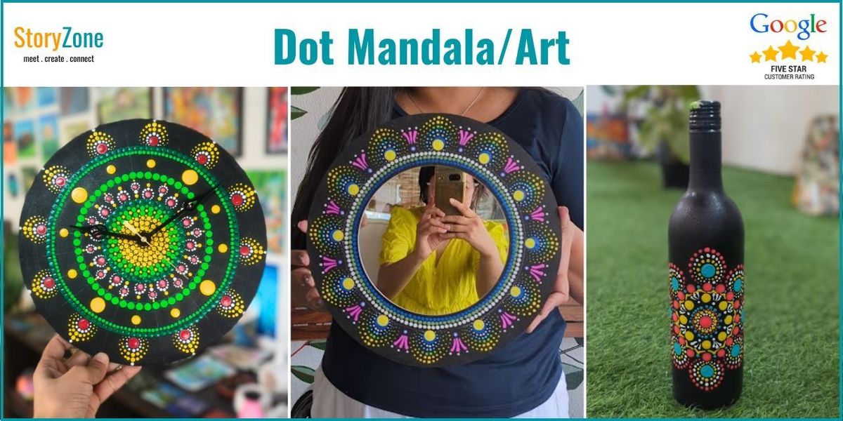 In Dot Art Workshop, we will be learning basics of dot art, introduction to tools & techniques and finally create a dot mandala/art, wall clock or wall mirror using acrylic paint and dotting tools.