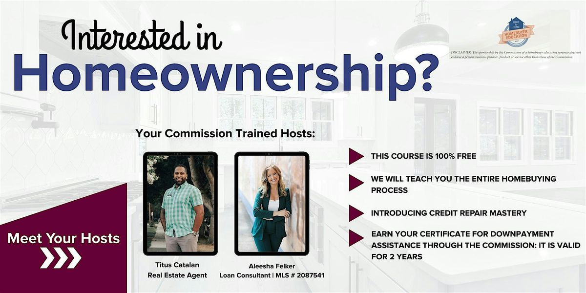 Hosted by Aleesha Felker and Titus Catalan, this in-person class will provide you with valuable insights and guidance to help you navigate the home buying process with confidence.