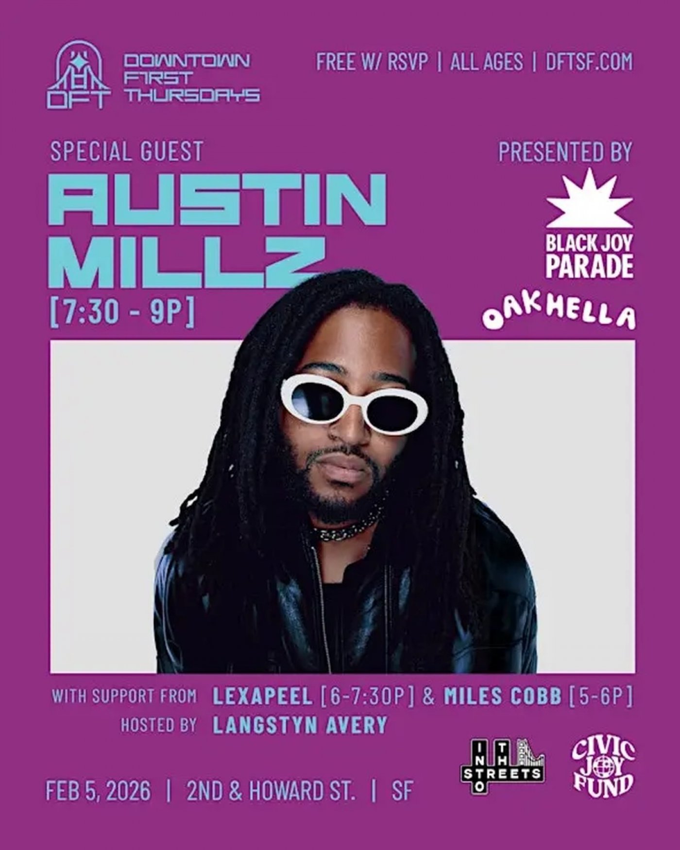 DFT is presented by Into The Streets and Civic Joy Fund in partnership The East Cut CBD, Yerba Buena Partnership, Natoma Cabana, and 111 Minna Gallery.