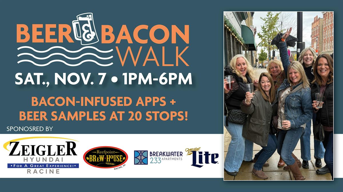 🍻🥓 Get ready for a sizzling fusion of flavor at Downtown Racine's 7th annual Beer & Bacon Walk on Saturday, November 7th, from 1 pm to 6 pm! Craft beer enthusiasts and bacon lovers alike, this is an afternoon crafted just for you. Explore the hip and historic downtown Racine, strolling through 20 locations that offer delightful brews expertly paired with mouthwatering bacon-infused finger foods.