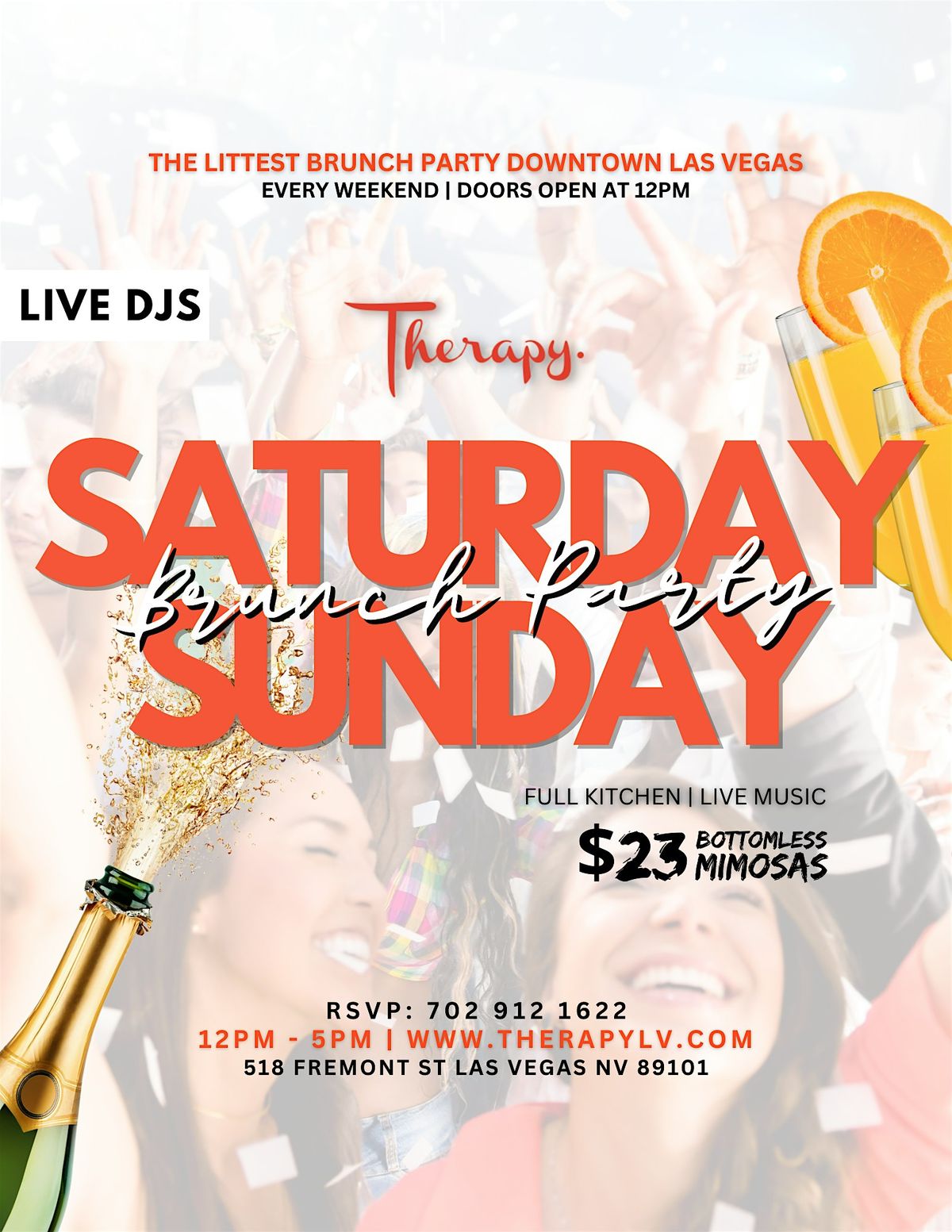 Every Saturday and Sunday, 11 am to 5 pm, Join us at Therapy, 518 Fremont St, FREMONT ST., and Las Vegas Blvd. LIVE DJ and Entertainer, Spin the wheel and win Prizes. Awarded winning food and drinks, Recommended by TRAVEL CHANNEL, "FOOD Paradise "