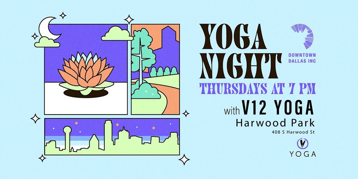 Join DDI and V12 Yoga on Thursdays at 7:00 PM in Harwood Park to enjoy Downtown Dallas and get your body moving with free yoga classes!About this Event