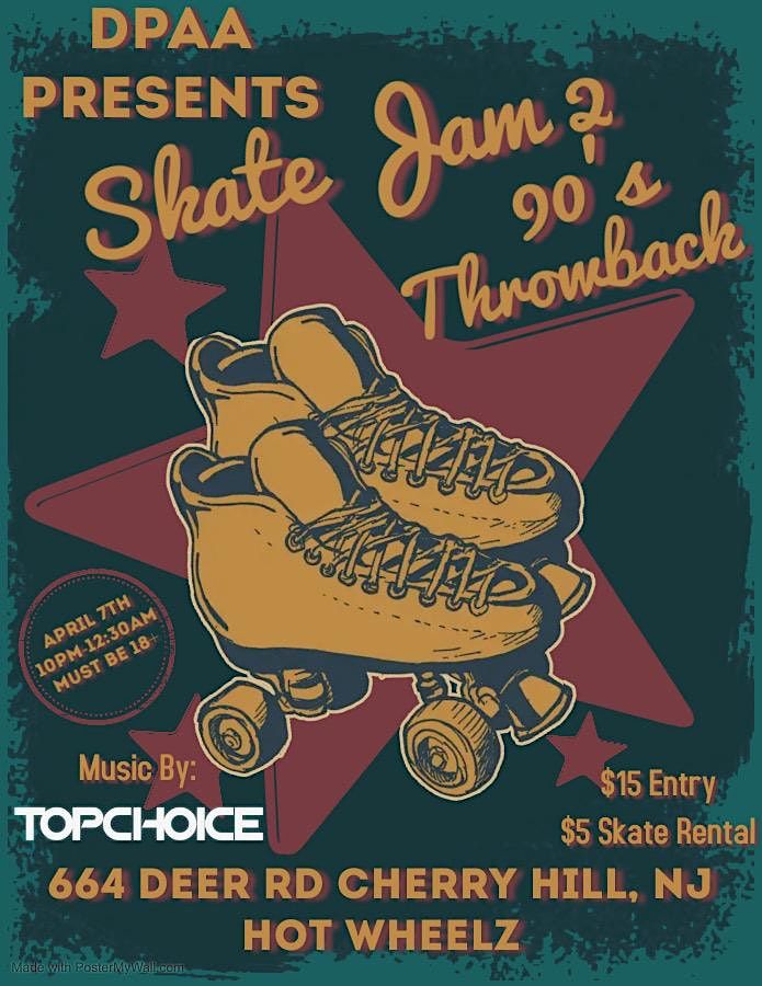 Bounce, Rock, Roll, Skate! We are back with another Skate Jam this time it’s 90’s Themed. This is an Adult Skating Party hosted by your favorite Alphas. Bring all your friends and family for a night full of excitement featuring music by Philly’s Own DJ Top Choice. No Outside Food or Drink, No Alcohol if there is alcohol the event will be shut down.