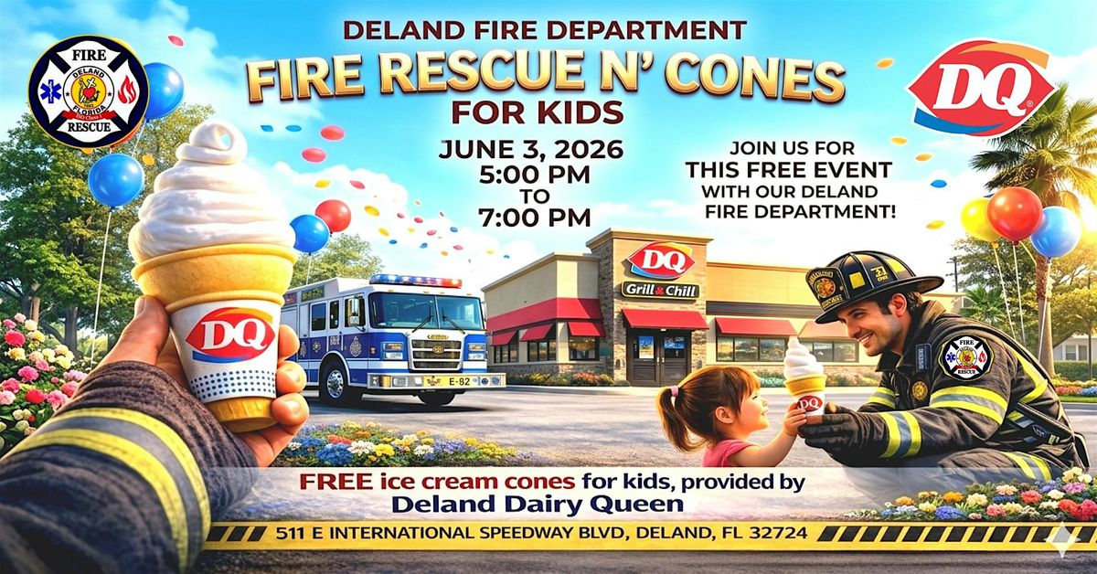 Join the DeLand Fire Department and DeLand Dairy Queen for Fire Rescue N' Cones—a sizzling sweet event for kids and families!