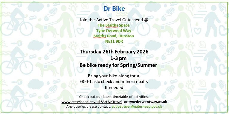 Free bike checks and minor repairs with our bike mechanics, Joe and Gavin from Active Travel GatesheadAbout this Event