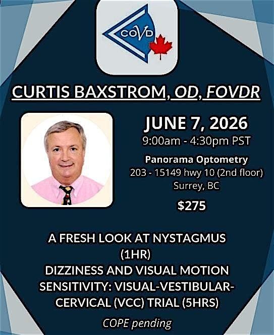 Join us in person for an insightful event with Dr. Curtis Baxtrom! Dive into the fascinating world of nystagmus, explore the challenges of dizziness, and understand visual motion sensitivity. Whether you're curious or dealing with these issues firsthand, this session is packed with valuable info and practical tips.