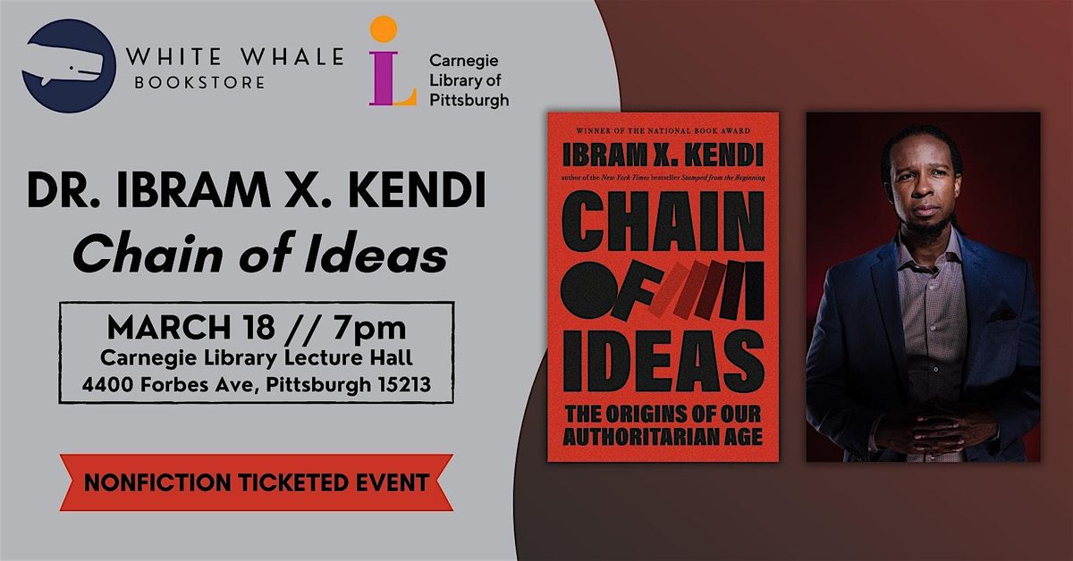 White Whale Bookstore and the Carnegie Library of Pittsburgh are honored to present an evening with Dr. Ibram X. Kendi, in conversation with a special guest, to celebrate Dr. Kendi's new book, Chain of Ideas: The Origins of Our Authoritarian Age.
