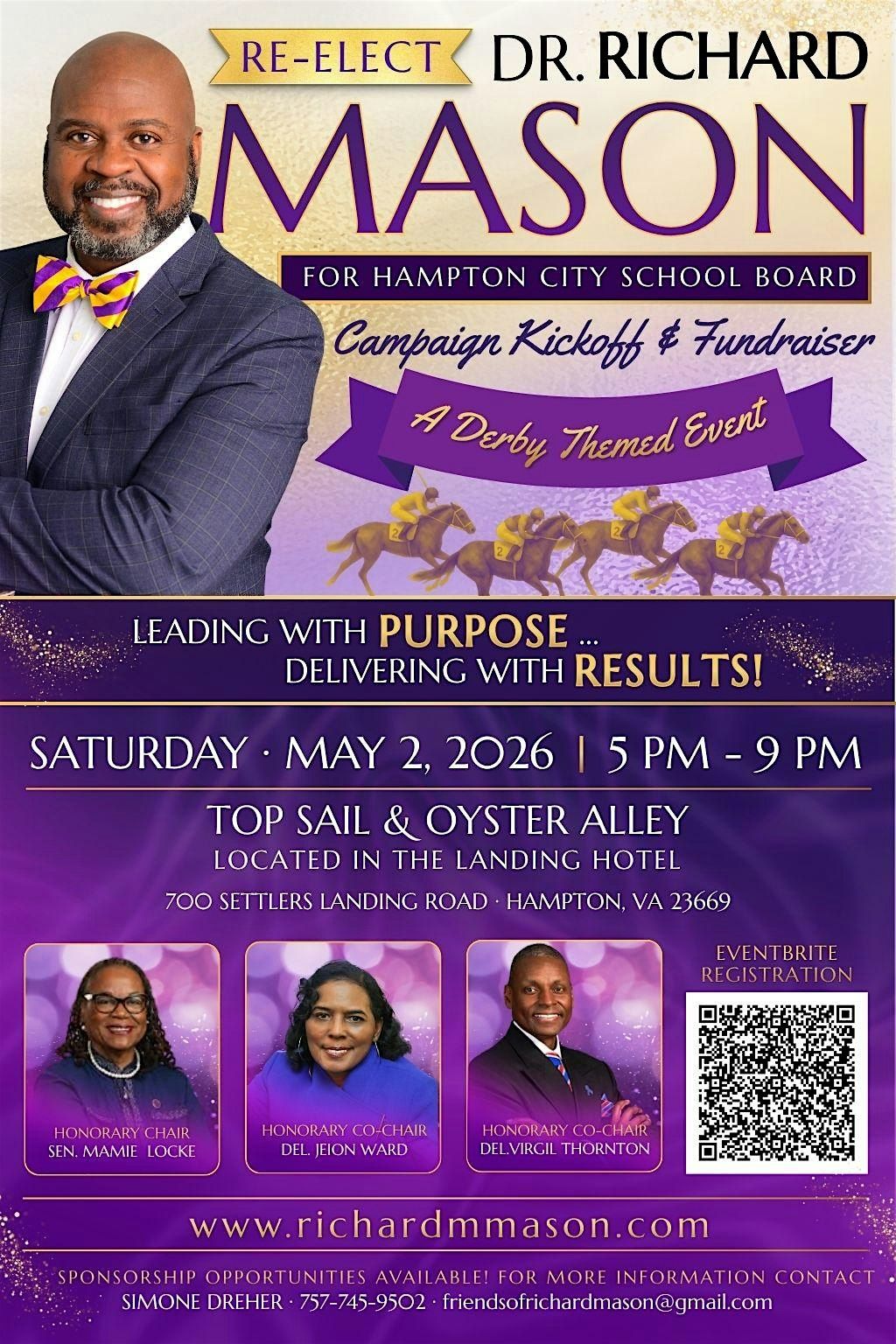 Come out and support Dr. Richard Mason on his road the Triple Crown as he seeks to win his third term on Hampton City School Board.