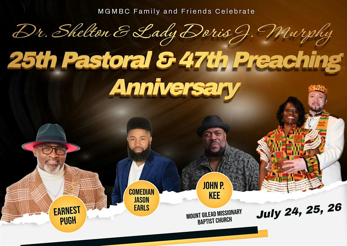 Join us for an unforgettable evening of elegance and celebration as we honor Dr. Shelton Murphy and Lady Doris J. Murphy for 25 years of Pastoral leadership and 47 years of powerful preaching.