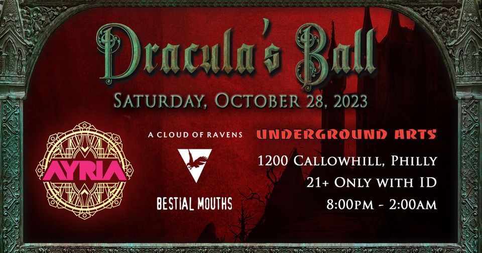 Tickets for the 25-year Anniversary Dracula's Ball on October 28th at Underground Arts are $30 and are on sale now. You can purchase tickets from SeeTickets or in person at the Underground Arts box office. As always, we'll have 2 DJs in two rooms, free candy, and lots of spooky costumes to enjoy. Doors open at 8pm and the party ends at 2am. This event is 21+ only with valid photo ID.