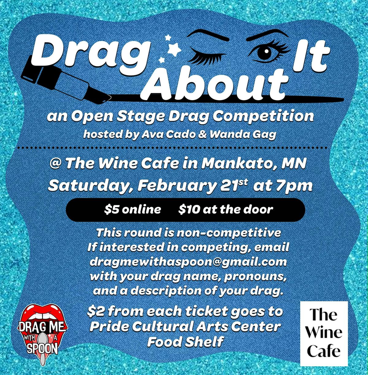 Join us February 21st at 7pm for our fabulous open stage show! Each month we’ll be asking our cast to bring a number of their choice and a number that meets the theme! This month we’re keeping it casual with no theme, just bringing some fun numbers! With each ticket we’re donating $2 to the Twin Cities Pride Cultural Arts Center Food Pantry which helps feed folks in Minneapolis being impacted by ICE presence in the cities. This show is welcome to folks 18+ tickets can be found online for $5 or $10 at the door!