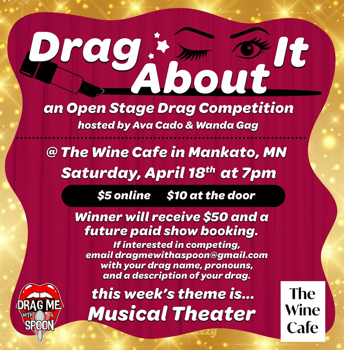 Join us April 18th at 7pm for our fabulous open stage competition! Each month we’ll be asking our cast to bring a number of their choice and a number that meets the theme! This month we’re taking you to Broadway, Baby! This show is welcome to folks 18+ tickets can be found online for $5 or $10 at the door!