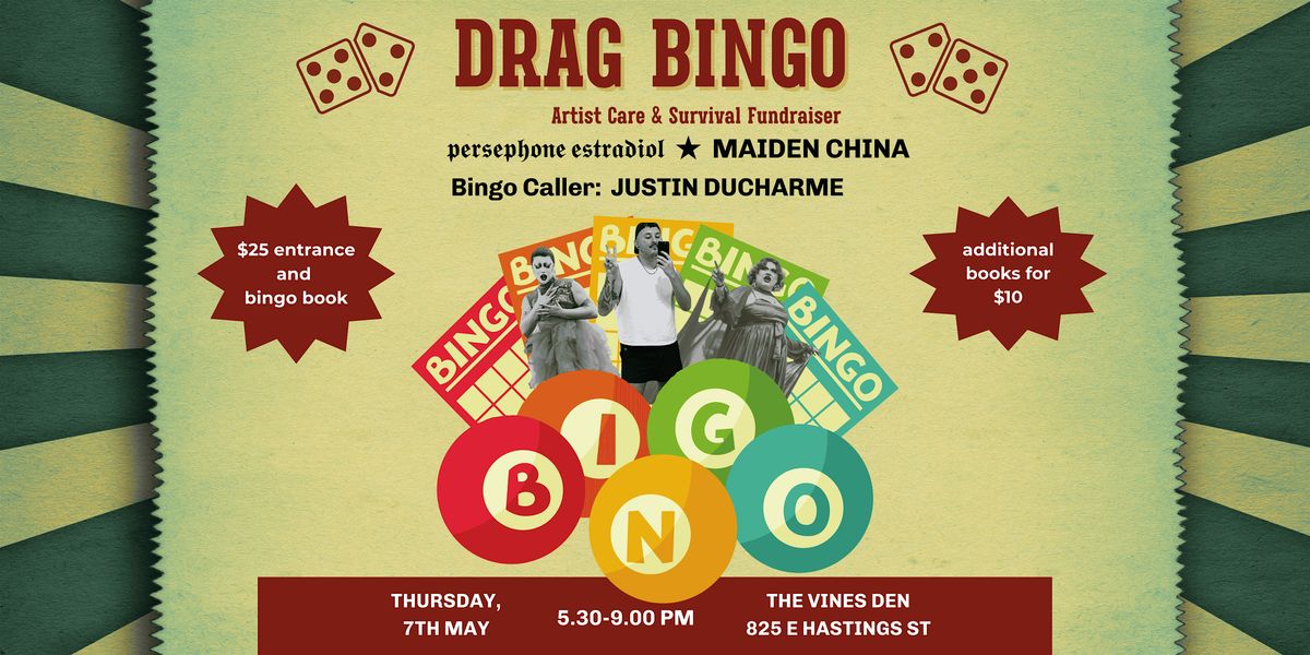 Join us for an drag and bingo filled evening! We’re raising funds for our Artist Survival & Healing Fund, supporting artists through both tough times and healing journeys. Bring your friends, your good energy, and maybe a little luck. All are welcome.
