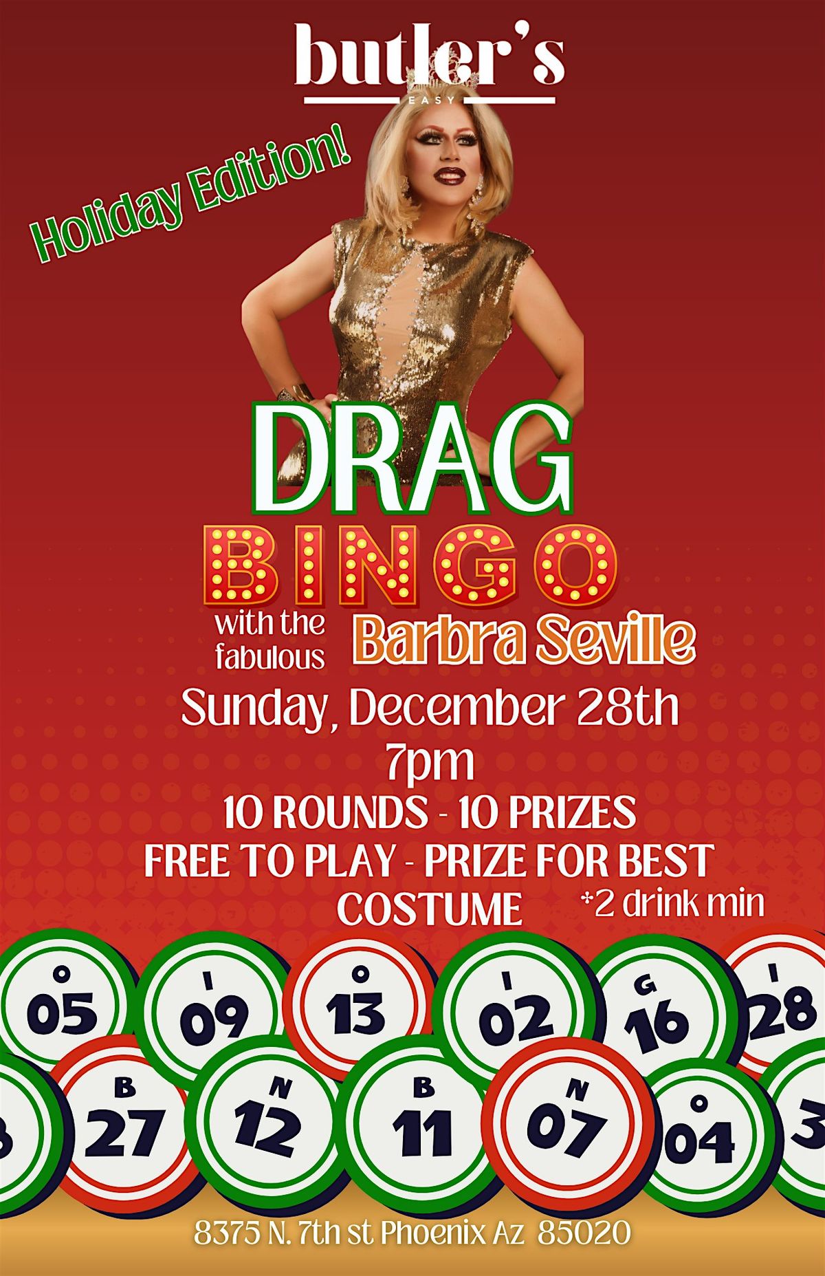 Join us for Drag Bingo at Butler's Easy - Holiday Edition! Drag Bingo is a night of fun, laughter, and fabulous prizes at Butler's Easy.