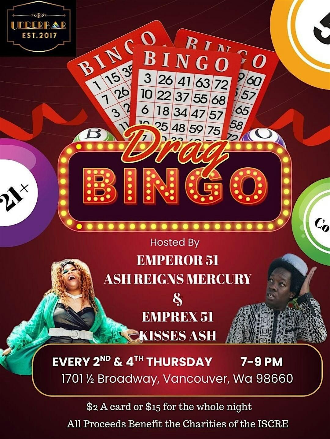 Every second and fourth Thursday at the UnderBar, is Drag Queen Bingo! Hosted by Empress Kisses Ash and Emperor Ash Regines Mercury Tree 51! Bingo from 7-9PM.