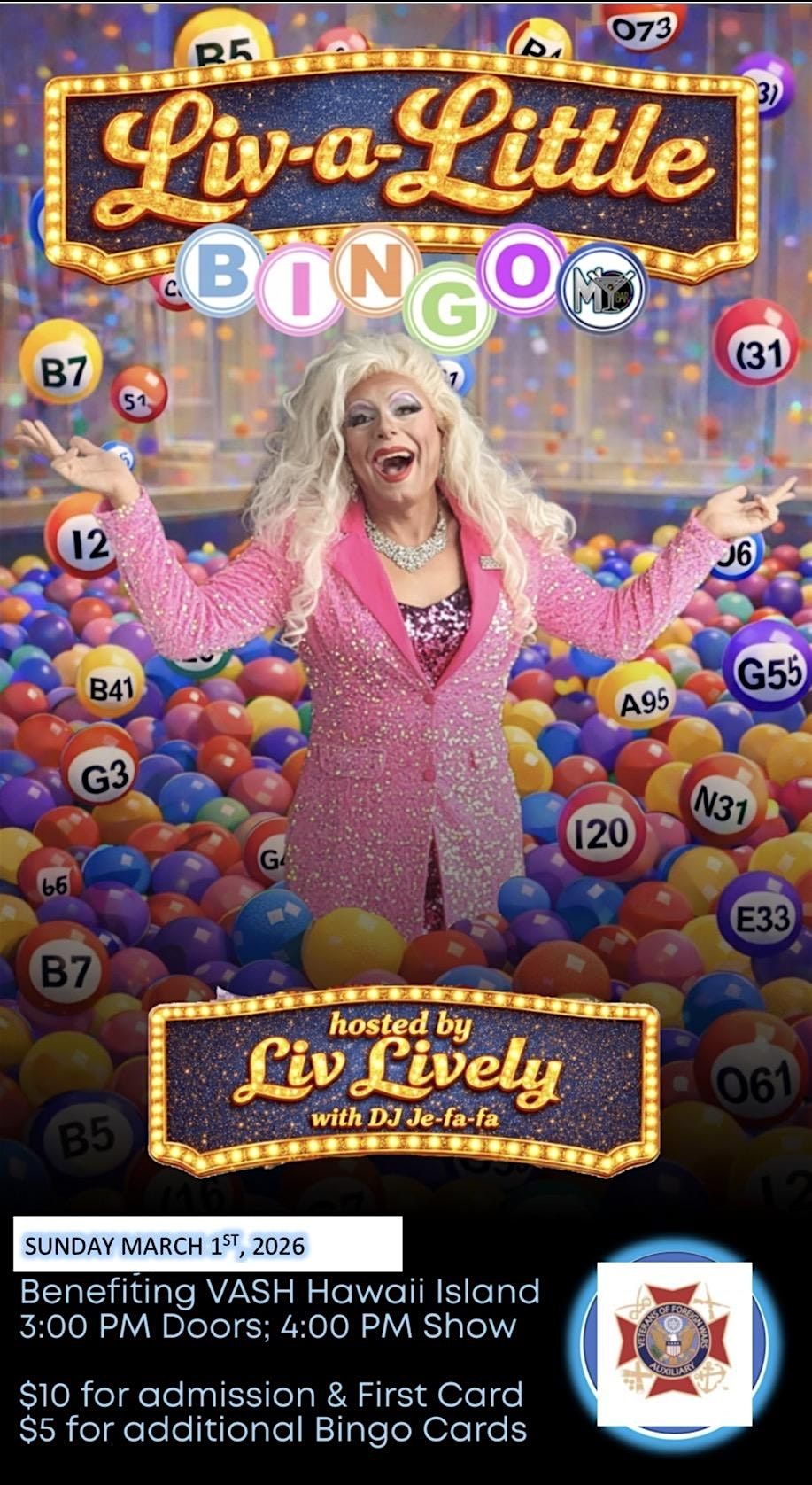 SUNDAY FUNDAY DRAG BINGO YOU CAN'T MISS w/ LIV LIVELY! Come grab a table with friends and support a different local non-profit each month!About this Event