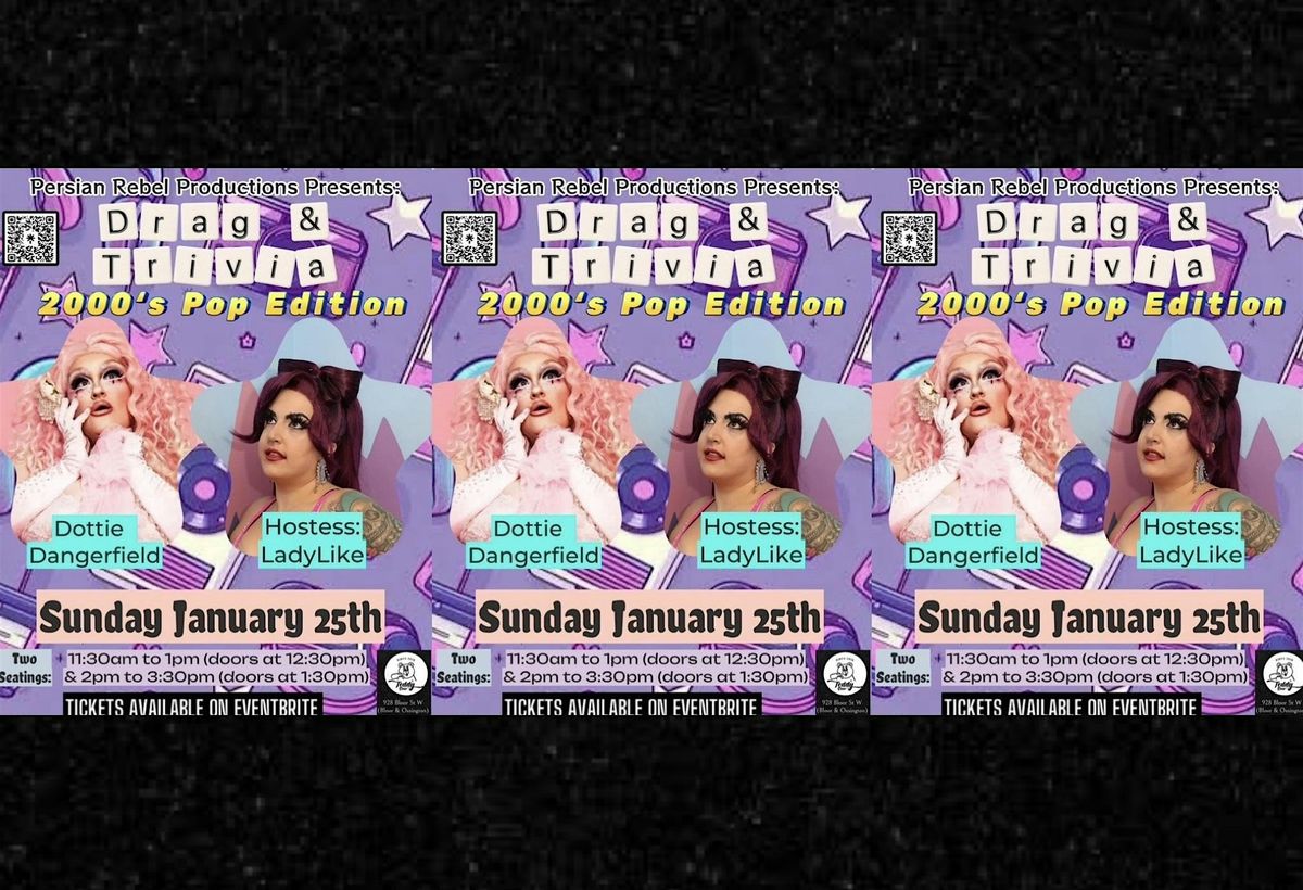 Persian Rebel Productions Welcomes you to Drag Brunch and Trivia - 2000's Pop Edition! Join us at Teddy Beer for a fabulous event filled with your favourite 2000's pop entertainment and fun. Get ready for a lively brunch featuring amazing drag performances with your Hostess with the Mostess LadyLike, and her special guest for the afternoon Dottie Dangerfield. Test your knowledge of all things that have to do with 2000's Pop with two rounds of Trivia in between performances. It's the perfect way to spend a weekend with friends, good food, and laughter. Don't miss out on this unique experience and win some amazing prizes!