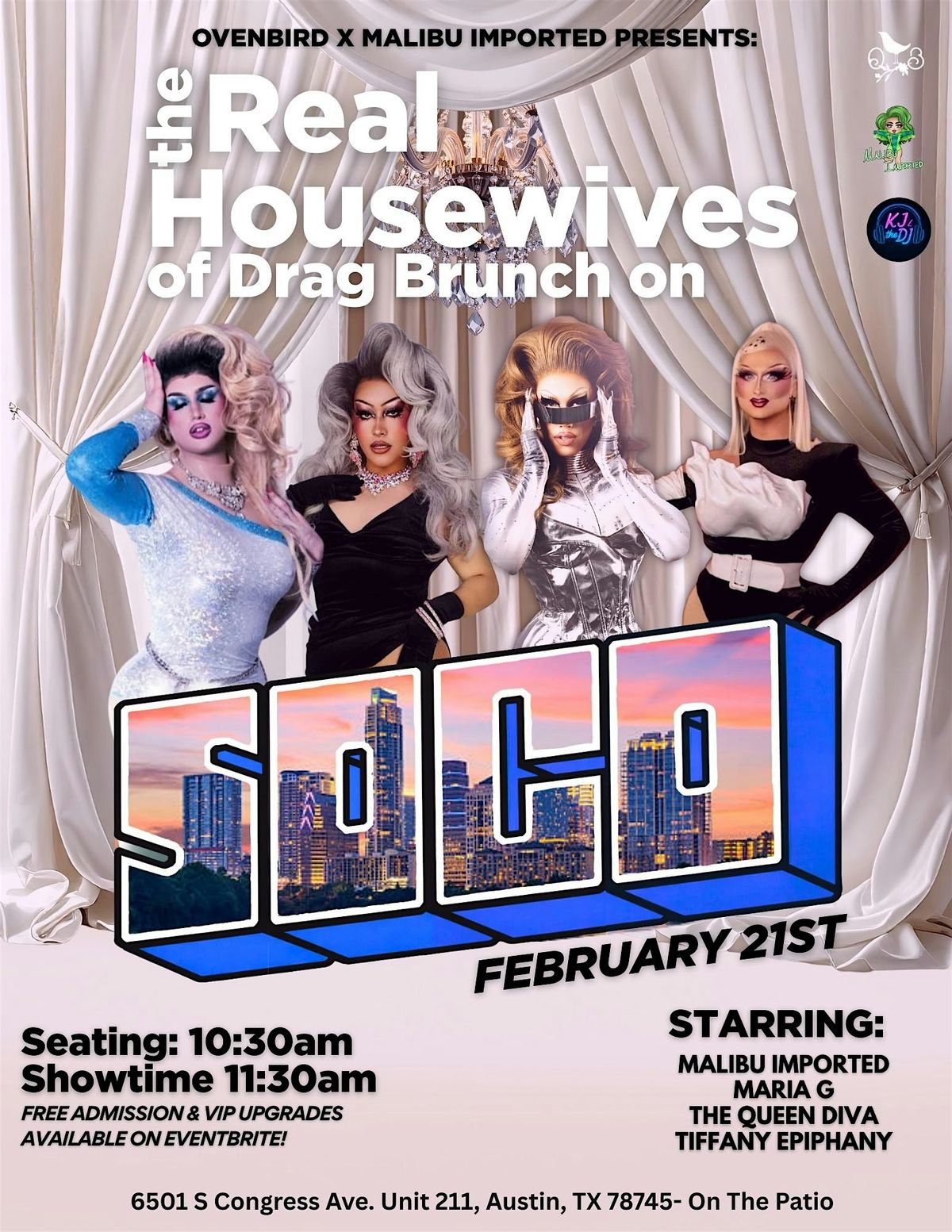 Brunch just got fabulous on South Congress! Join us at Ovenbird for Drag Brunch on SOCO, a high-energy patio party featuring fierce drag performances, delicious brunch bites, and flowing drink specials—right in the heart of one of Austin’s most iconic districts. Hosted by Malibu Imported, with a live DJ keeping the vibes high all brunch long.