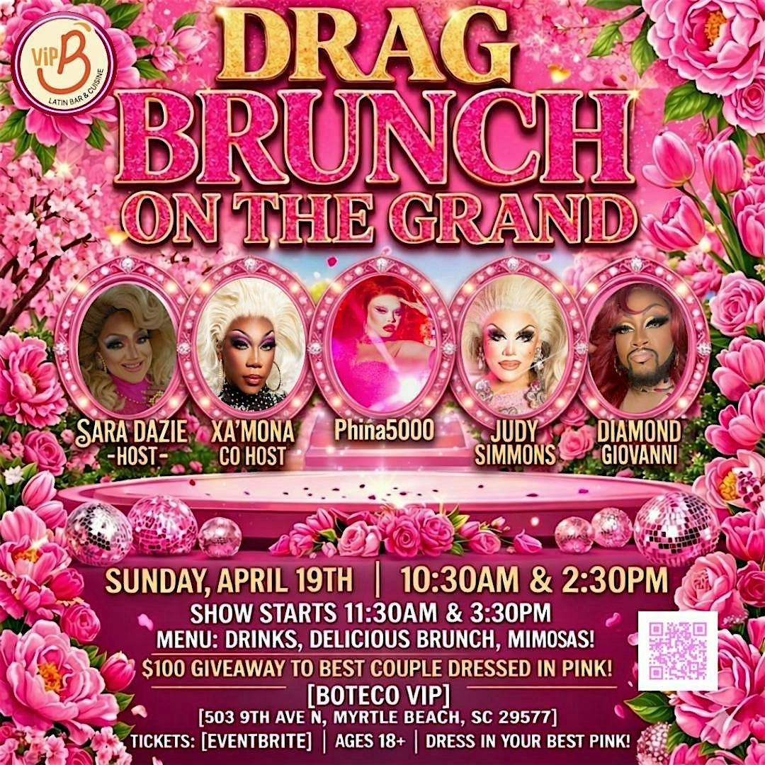 Get ready to paint the town pink at the most vibrant brunch experience in Myrtle Beach! Drag Brunch on the Grand returns to Boteco VIP for a spectacular day of high-energy performances, delicious food, and fabulous prizes.