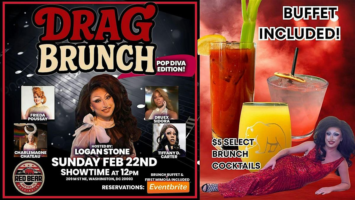 Tickets include a brunch buffet featuring a large variety of delicious options. Join host Logan Stone and an all star cast celebrating Pop Culture! Come see why we were voted 2023 BEST BRUNCH IN DC by the Washington Blade! Brunch buffet includes:Sausage/Steak/Vegan Breakfast Burritos, Chicken Tenders, Caesar Salad, Toast, French Toast, Bacon, Fruit, Scrambled Eggs, and Tator Tots. Drink Specials! $5 Mimosa, Bloody Mary, and Gin or Vodka Greyhound. Doors at 11:00 AM, show begins at 12:00 PM. Seating is first come, first served. Drag brunch is a 21+ event.