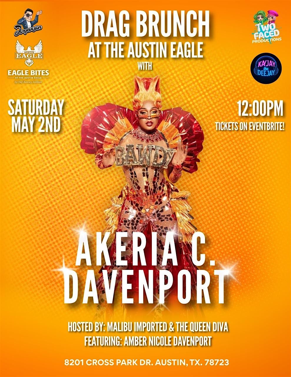 Special guest from RuPaul’s Drag Race Season 11 and All-Stars Season 6 the body herself, Akeria C. Davenport is touching down in Austin for Drag Brunch with Two Faced Productions at The Austin Eagle!