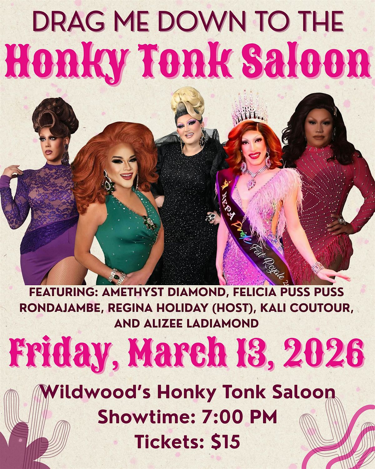 Drag Me Down to the Honky Tonk Saloon is bringing high glam, big hair, and country-flavored chaos to Wildwood’s Honky Tonk Saloon for one unforgettable night.