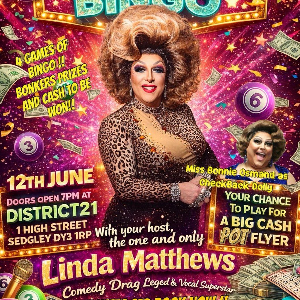 This is NOT your normal bingo night... this is BONKERS BINGO!Hosted by the sensational Linda Matthews - Comedy Drag Legend & Vocal Superstar