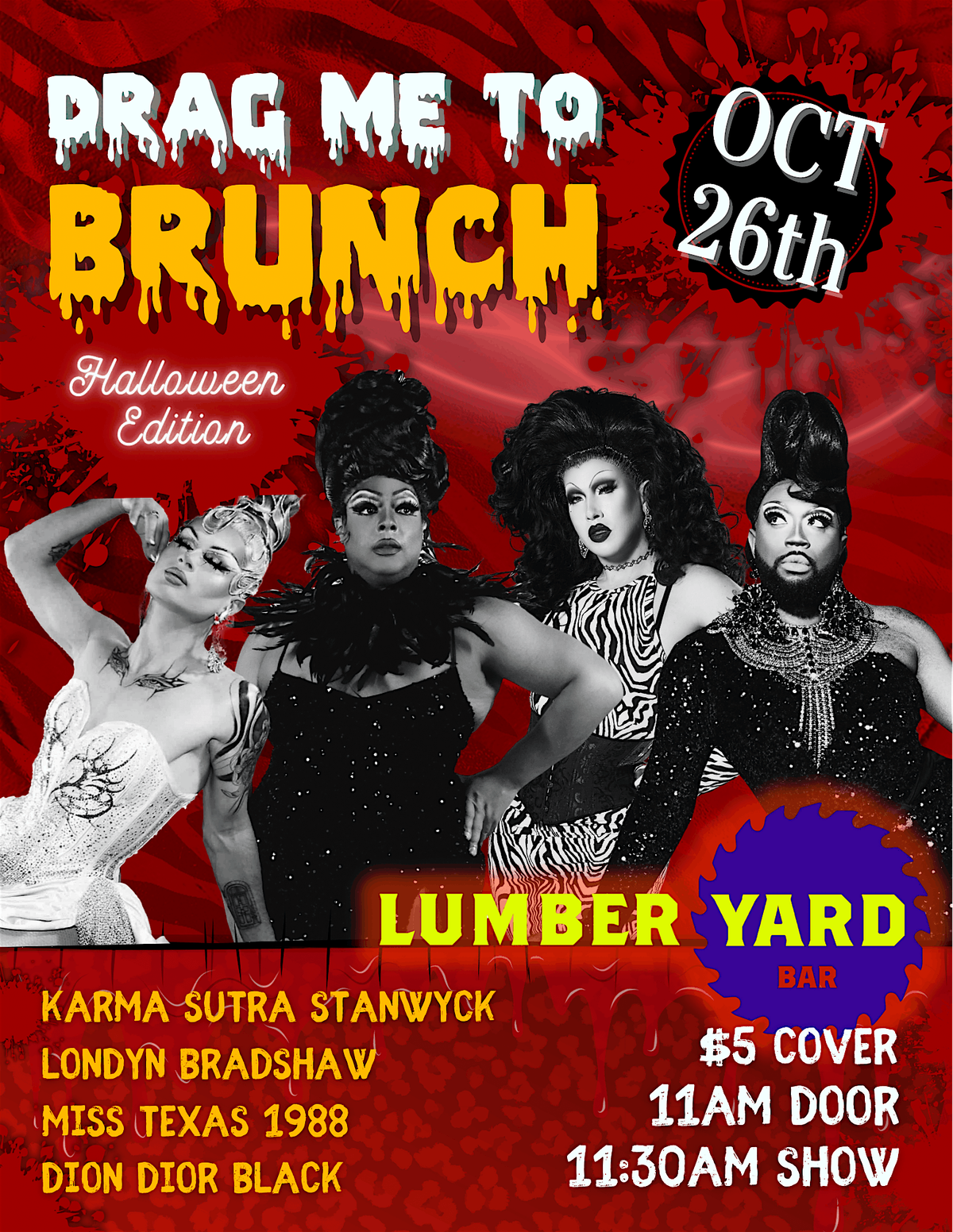 It’s the Halloween Edition of Drag Me to Brunch, hosted by Londyn Bradshaw, Dion Dior Black , Miss Texas 1988, and special guest Karma Sutra StanWyck.