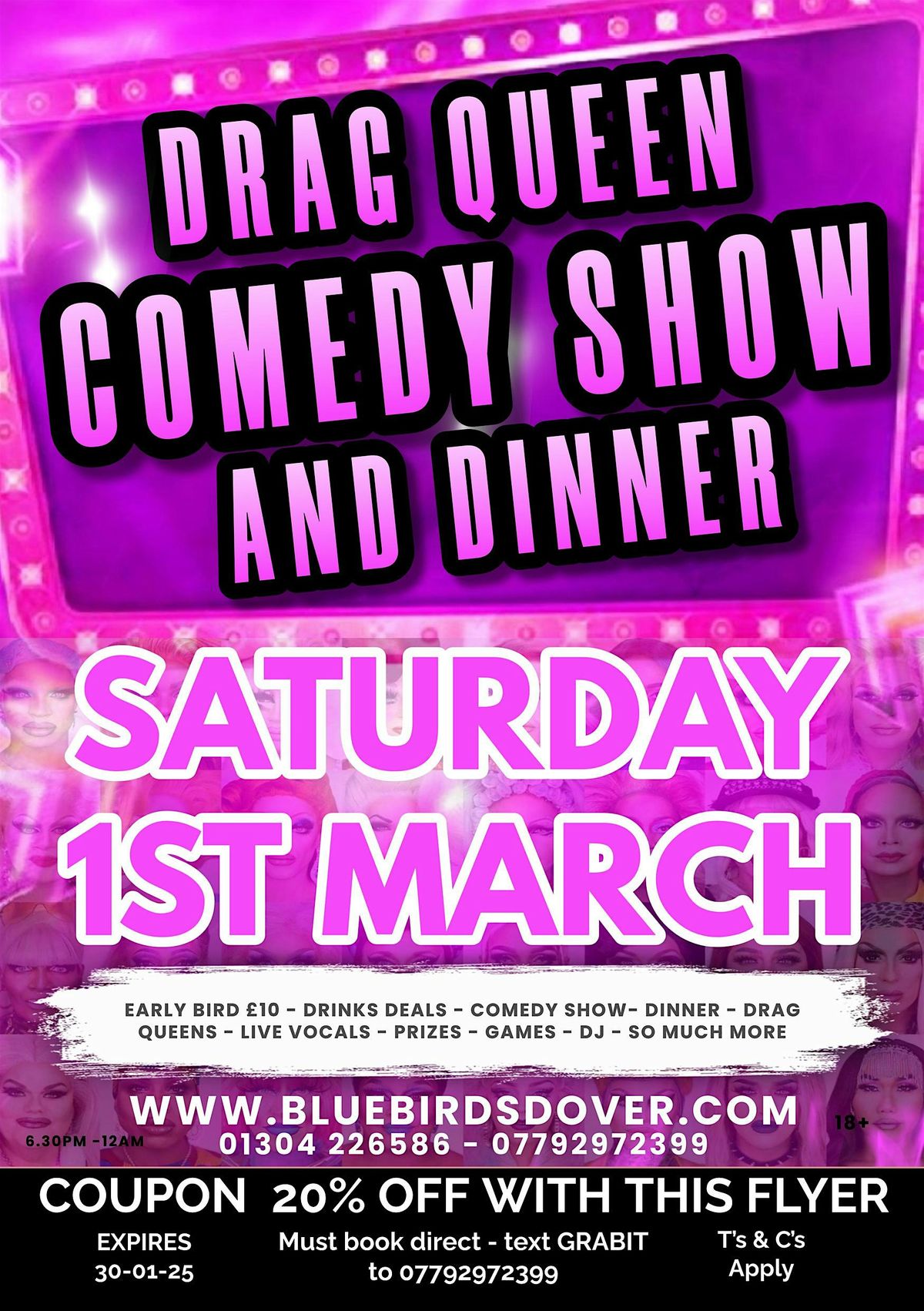 I am so excited to welcome you all back to one of our famous Drag queen comedy nights. This is an over 18’s event ONLY. ID may be asked on arrival if your lucky enough to look under 25 so please have this to hand. Driving licence or passport only.